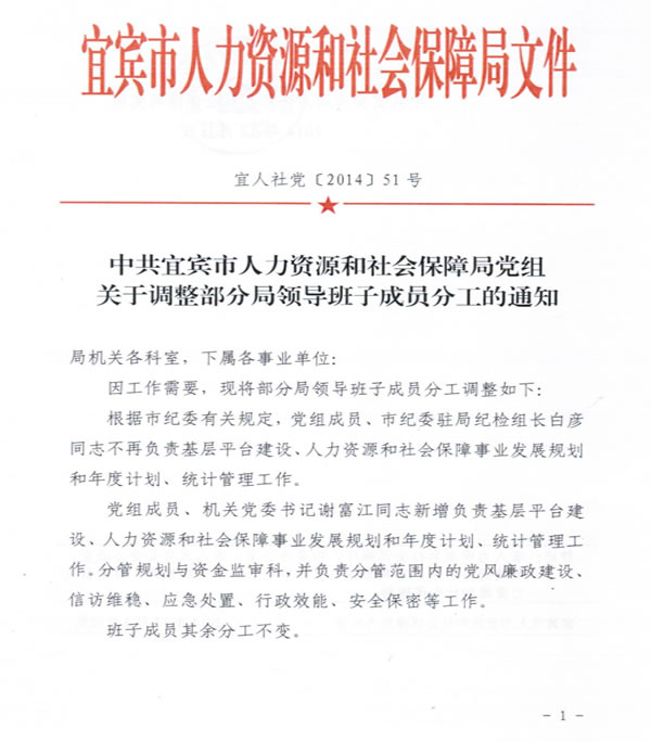 关于调整部分局领导班子成员分工的通知
